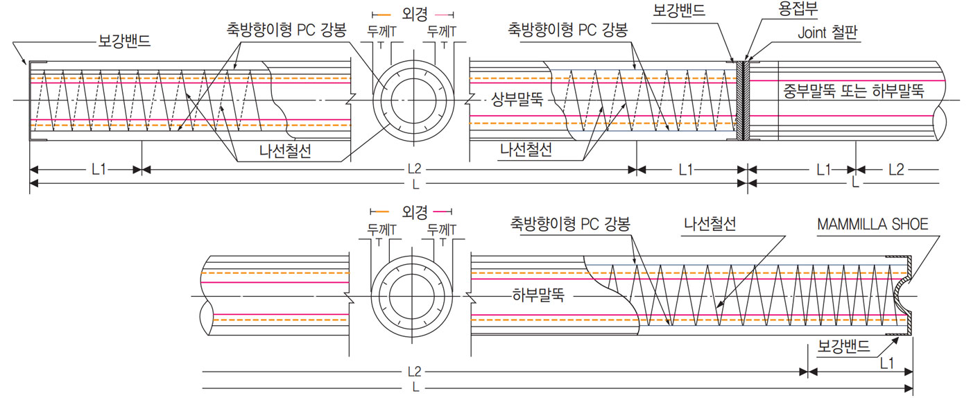 외경 | 단위중량 | 길이 및 중량(ton) | |||||||||||